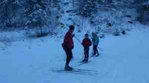 La séance club du Mercredi 17 décembre a la Féclaz (départ des 4 chemins) a eu lieu dans des conditions hivernales. Une petite couche de neige fraiche recouvrant le fond gelé a permis une glisse très correcte. Ici le groupe « Releve » en action.